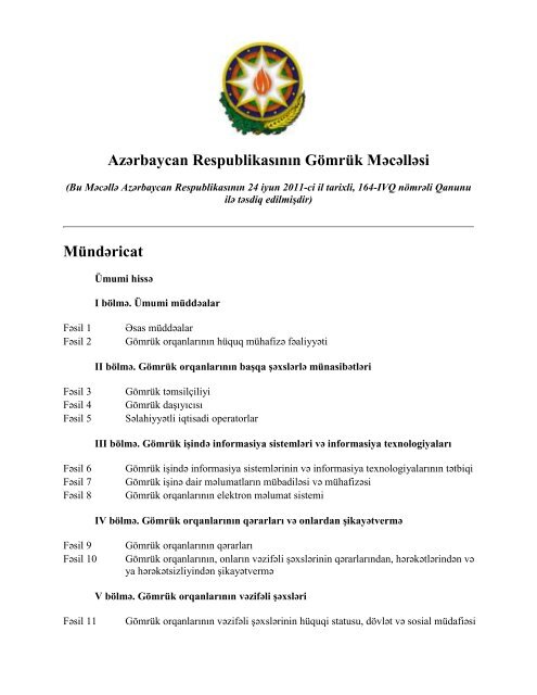 Azərbaycan Respublikasinin Gomruk Məcəlləsi Mundəricat