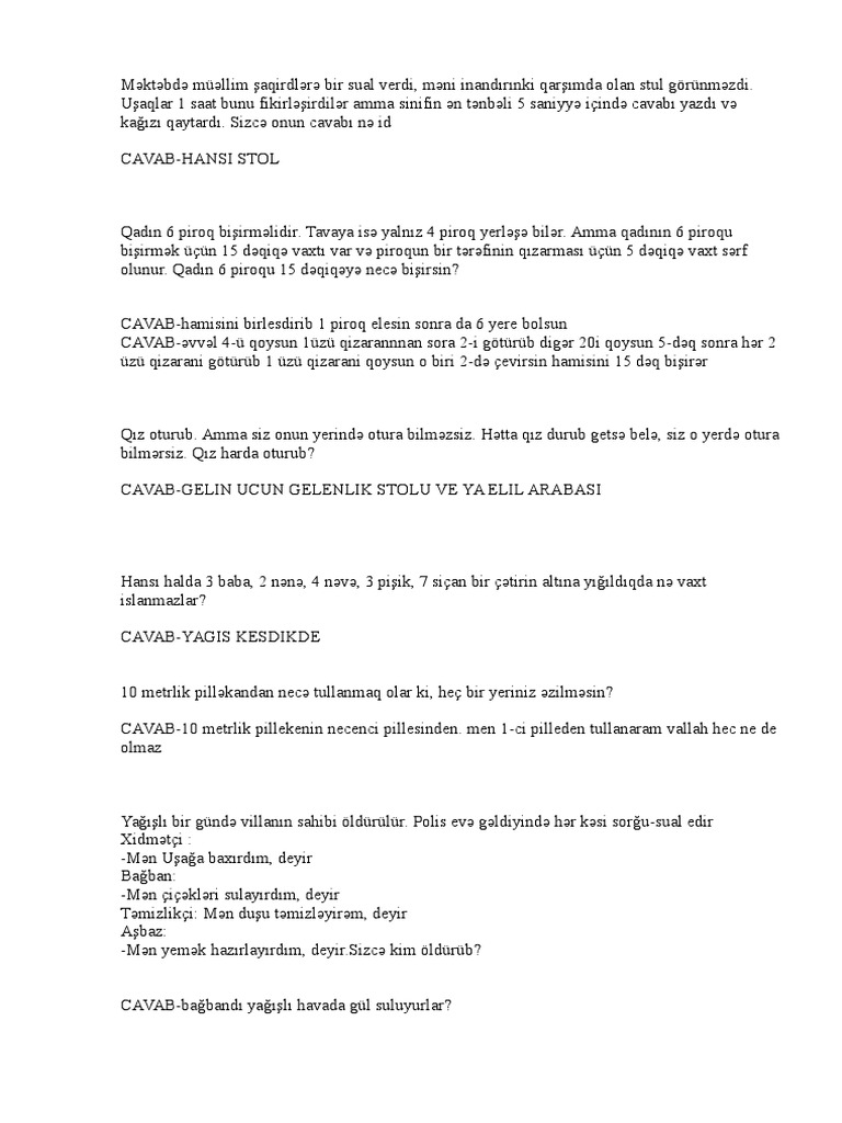 Cətin Məntiqi Suallar Və Savablari 2020